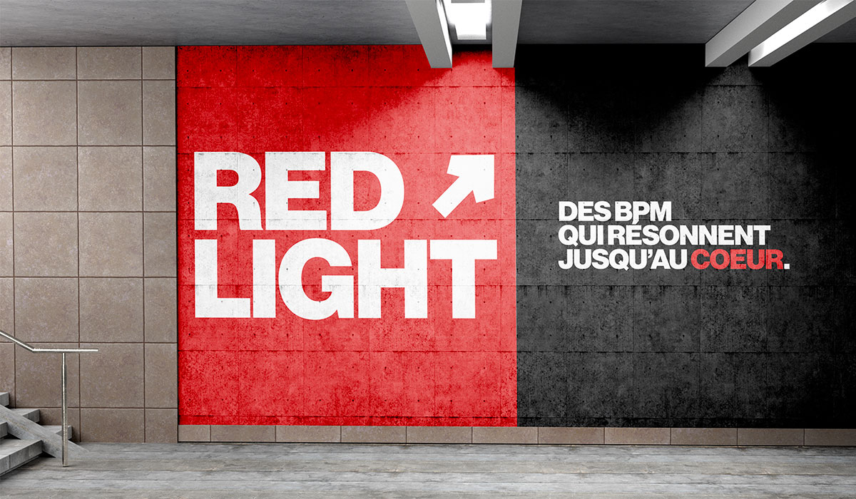Affiche d'une soirée Red Light mise en situation dans la rue.